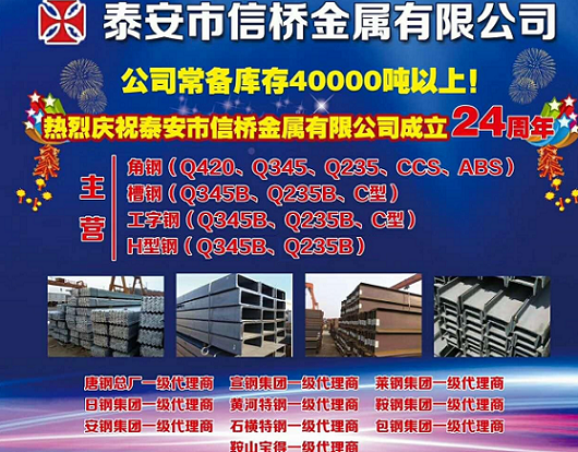 泰安市信橋金屬有限公司一家典型的線上、線下鋼鐵銷售企業(yè),在信橋,信譽至上貫穿始終;在信橋,足不出戶做銷售不再是空想;在信橋,逢節(jié)要賬已是過去;在信橋,一站式便利提貨成為現(xiàn)實;在信橋,可以收獲事業(yè)與人生。