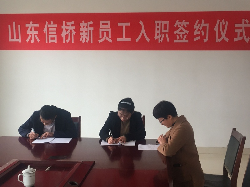 2018年11月30日下午3點(diǎn),新員工入職簽約儀式在泰安信橋二樓會議室舉行,公司副總石振偉與新員工李佳欣參加,同時公司財(cái)務(wù)總監(jiān)張燕與人事人員出席。