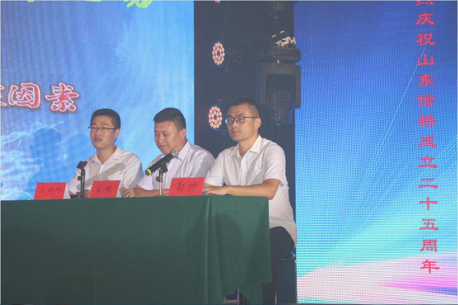 此次慶典晚宴參加人員除了信橋全體員工之外,還有部分老領導和老朋友,大家共同分享了信橋二十五周年的喜悅與精彩。慶典開始之前,演員們辛勤排練,燈光師、音響師共同配合,所有人為了晚會都在努力。下午5點28分,晚會正式開始,全體員工與領導集體合影,各個辦公室全體員工也各自合影。