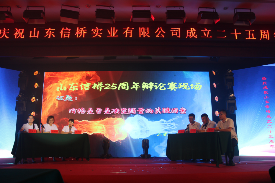 第五個節(jié)目是由信橋男生隊王丙丙、高雨、郭帥,女生隊徐賽、劉琳琳、宋金萍,客串周廣超、趙文玲帶來的《辯論賽》,辯論主題是價格是否是決定銷量的關鍵因素,雙方辯手就自己的觀點展開了激烈的討論,最后全體辯手共同朗誦《沁園春·信橋》。