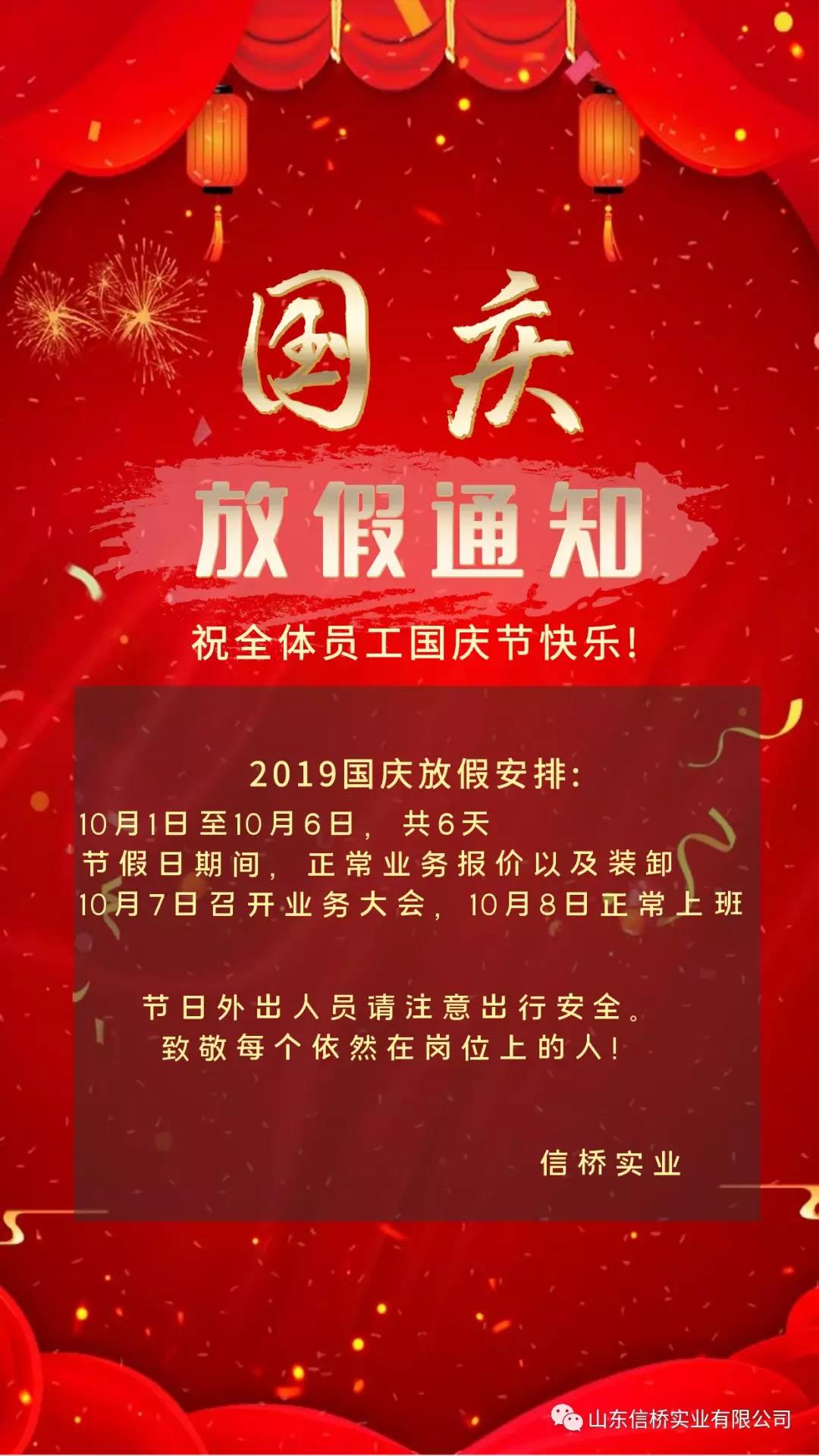 National Day holiday notice